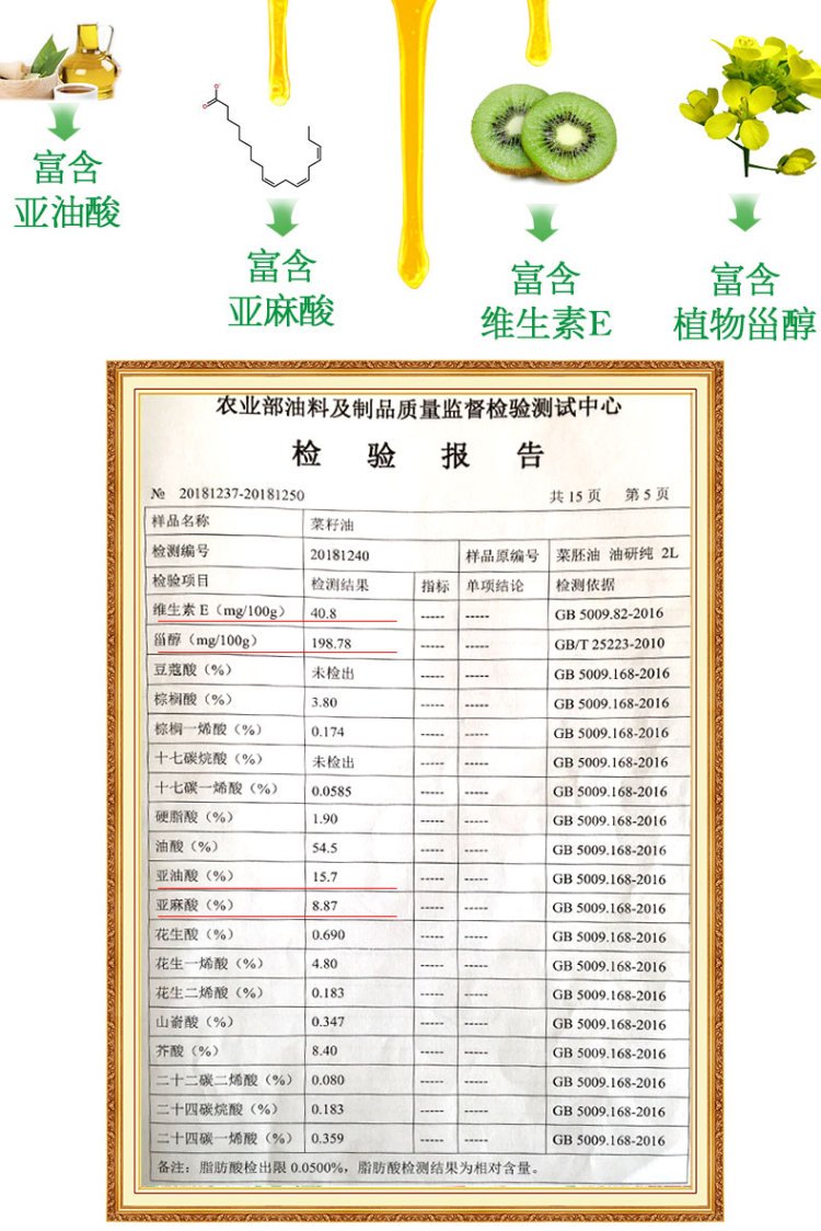 【不饱和脂肪酸93%  冷榨菜胚油】脱去黄曲霉素/留Ɯ-3(α-亚麻酸) 甾醇  角鲨烯 维生素E /  低温初榨 2L/  源自8%的菜胚精华